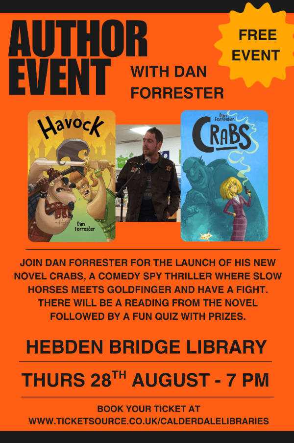 I’m thrilled to announce I will be holding a launch event for my new novel CRABS at Hebden Bridge Library on Thursday 28th August 2025 at 7pm!